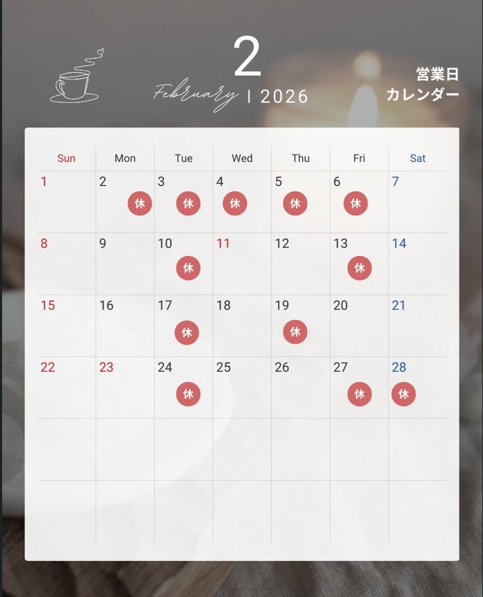 【2月の営業日】(1/19現在)